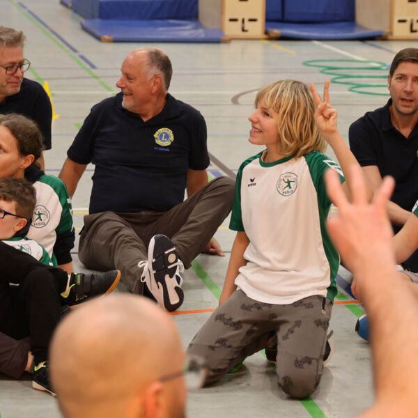 Der LC Rösrath hat am 16.02.24 die Handballgruppe der HSG Rösrath/Forsbach für Kinder mit Handicap mit Sportausrüstung überrascht. Der Club spendete spezielle Tore, Bälle, Trainingsmaterialien und einen Satz Trikots für die engagierten Sportler. Bei der Übergabe durften die Lions Robert Scheuermeyer, Durk Visser, Steffen Lindner und der aktuelle Präsident Guido Kleve sich davon überzeugen, welch tolle Arbeit das Trainerteam mit den Kindern leistet. „Es war toll, dass wir sogar ein paar Übungen mittrainieren durften, hier ist ein wahnsinniges Engagement zu sehen, dessen Unterstützung sich sehr lohnt“, fasste Guido Kleve zusammen. Inklusion und Diversity sind derzeit Schwerpunkt der Förderungen des Clubs in Rösrath.