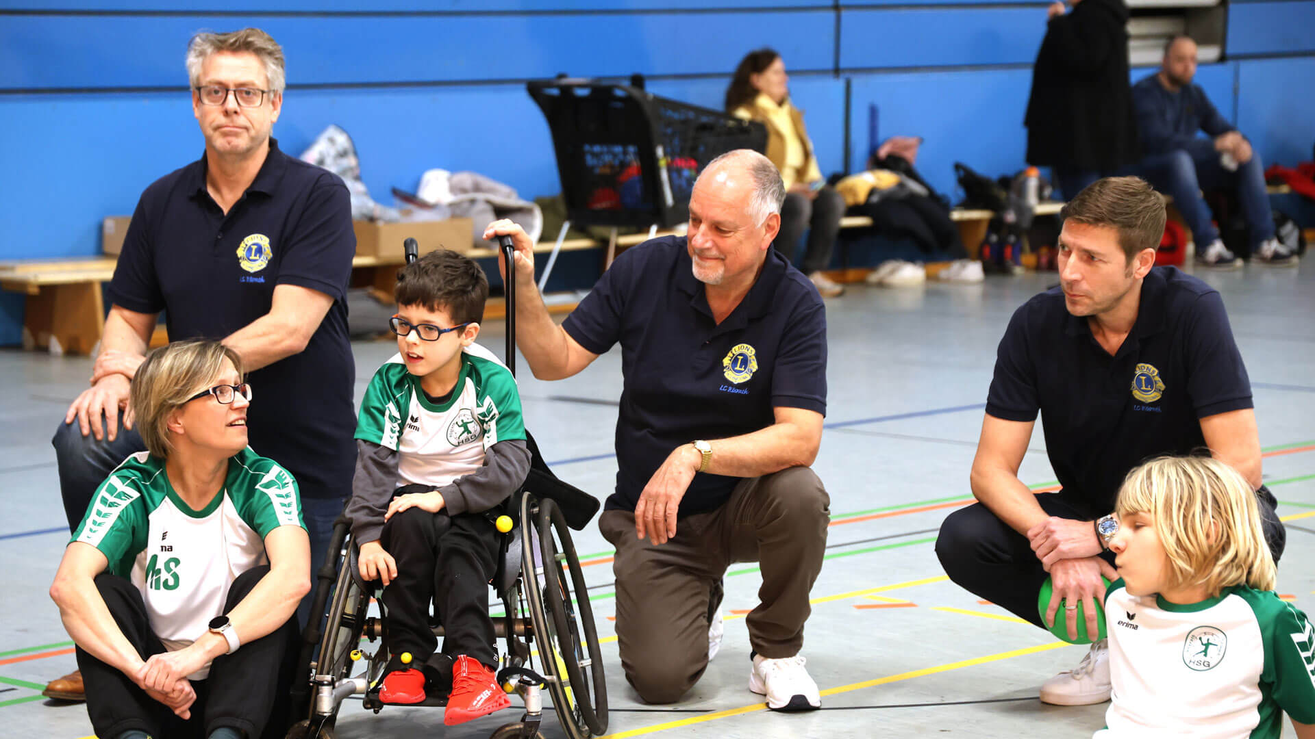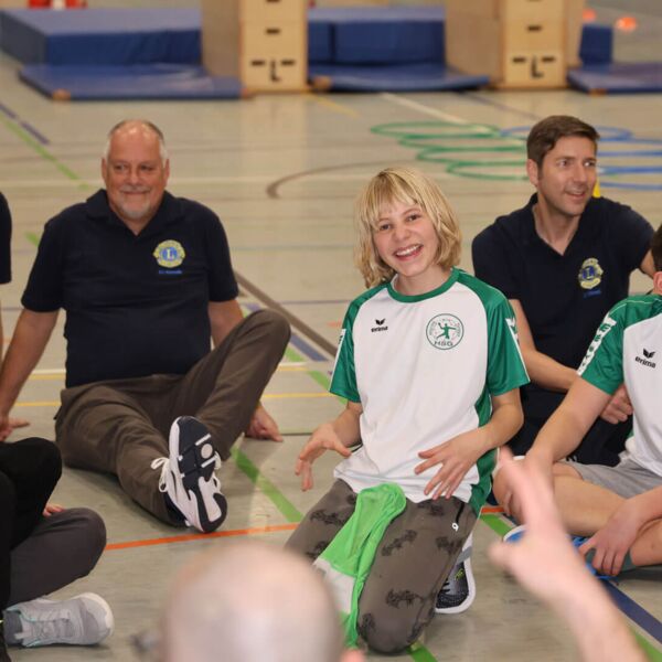 Der LC Rösrath hat am 16.02.24 die Handballgruppe der HSG Rösrath/Forsbach für Kinder mit Handicap mit Sportausrüstung überrascht. Der Club spendete spezielle Tore, Bälle, Trainingsmaterialien und einen Satz Trikots für die engagierten Sportler. Bei der Übergabe durften die Lions Robert Scheuermeyer, Durk Visser, Steffen Lindner und der aktuelle Präsident Guido Kleve sich davon überzeugen, welch tolle Arbeit das Trainerteam mit den Kindern leistet. „Es war toll, dass wir sogar ein paar Übungen mittrainieren durften, hier ist ein wahnsinniges Engagement zu sehen, dessen Unterstützung sich sehr lohnt“, fasste Guido Kleve zusammen. Inklusion und Diversity sind derzeit Schwerpunkt der Förderungen des Clubs in Rösrath.
